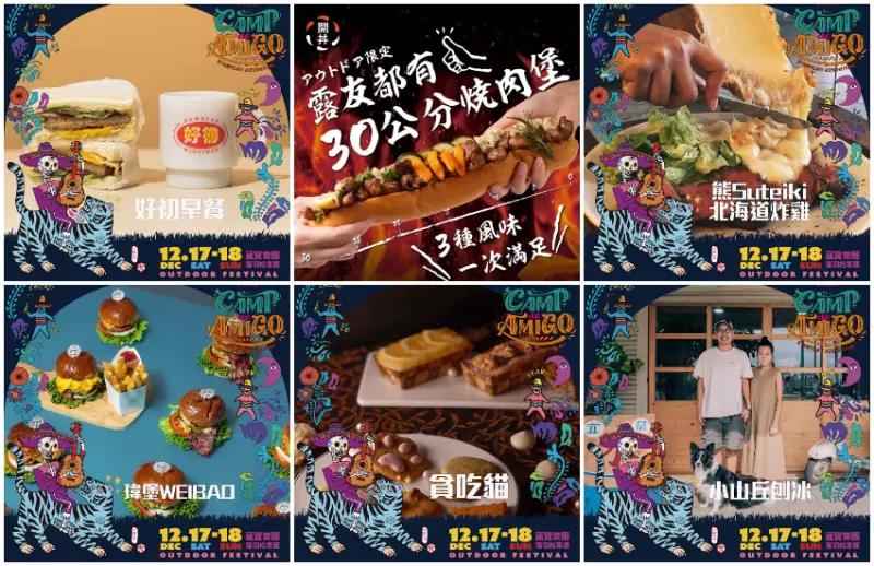 Camp de Amigo 的聖誕市集由於集結上百家的特色美食攤位及異國風格市集,讓你不用飛出國就能品嘗及購買各地特色商品,特別精選了超過百家攤位市集,網羅日式、美式、、墨西哥等異國美食料理,嚮往日本的 OUTDOOR 風格,那麼推薦你一定要來裝備市集逛逛,有露營裝備、風格雜貨、特色品牌、親子體驗、手作教學等企劃,現場獨家商品販售還有許多活動好禮,讓你所有願望一次滿足。
