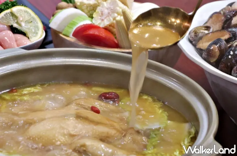 其中,招牌「黃金花膠雞湯鍋」以一斤要價上萬的高級野生鱸魚花膠入菜,並選用在阿里山山腳下放牧飼養的「玉米雞」、嚴選帶骨金華火腿與北海道干貝等高級食材歷時三天慢工熬製成鮮美濃郁的「黃金花膠雞湯」,所有原料完美的融進金黃色湯頭裡,滿滿的膠原蛋白使湯底變得更加濃稠,特別受到女性客群的喜愛。