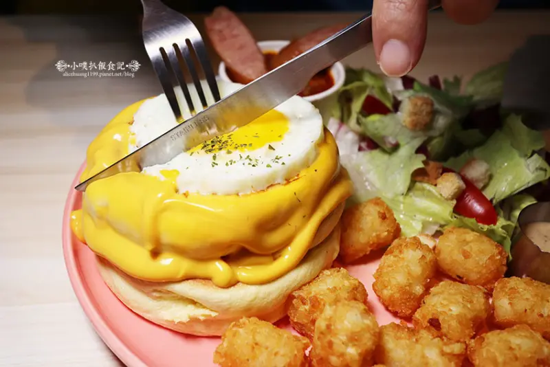以三層舒芙蕾堆疊「等很久舒芙蕾」,上面淋上誘人的起司醬,綿嫩鬆軟的舒芙蕾,微甜的口感,加上起司醬的濃香,鹹甜交錯,口感相當match,完全不違和啊~原來鹹食舒芙蕾這麼好吃啊~<全文介紹>