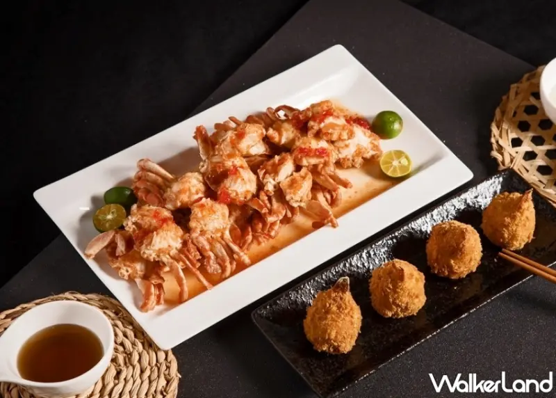 以及肉質厚實附有彈性,咬勁十足的石蟳,搭配泰式調味以涼拌的方式製作的「泰式涼拌石蟳」,其他還有廣受消費者歡迎的「蟹肉加州捲」或「蟹肉軍艦壽司」、「芥末蟹肉散壽司」等多種日式做法,針對嗜辣者則是推出不可錯過的「新加坡辣炒螃蟹及海戰車」,沾附者滿滿醬汁的蟹肉與飽滿肉質的彈蝦,辣中帶酸、酸中帶著辣勁。