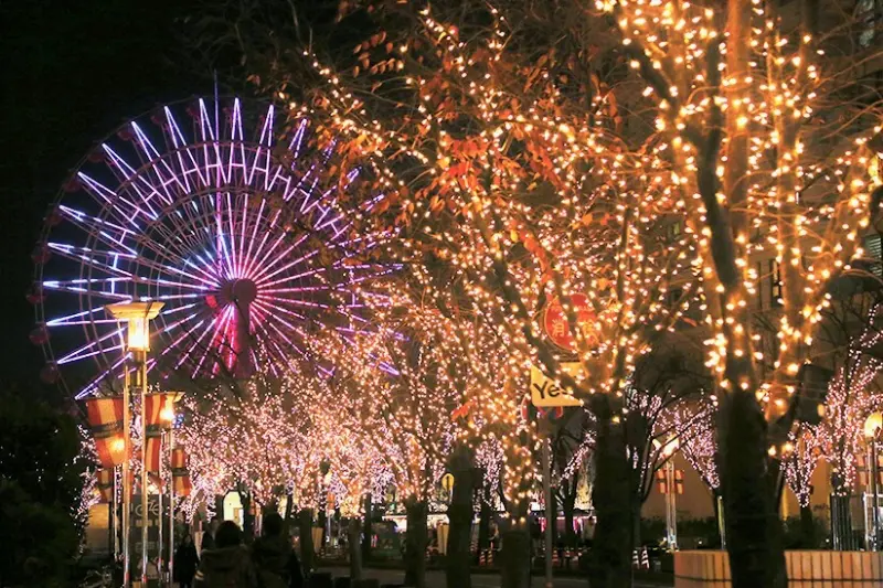 「神戶HARBORLAND」(神戶臨海樂園)是沿著神戶港所打造,集結購物、美食、娛樂設施、飯店及地下街等的大型複合商業設施,位在神戶站及元町站徒步圈內,不僅有許多時尚的店鋪及各式餐廳進駐,更有摩天輪與遊艇巡遊等,因此吸引許多觀光客而顯得熱鬧不已。今年適逢「神戶HARBORLAND」30週年,主幹道兩旁的樹木妝點了五彩繽紛的霓虹燈,使得整座「神戶HARBORLAND」環繞在夢幻的金色燈光中,特別浪漫。
