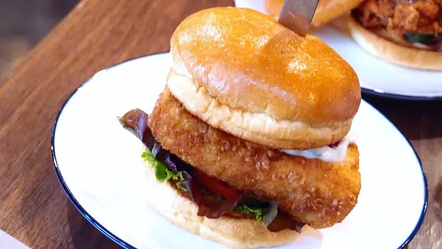 板橋炸肉餅堡麵包外酥內Q非常好吃,裡面夾著生菜以及厚實的漢堡肉,大小適中,漢堡肉是店家使用真心拳打出來的肉餅,而且這漢堡肉是經過高溫炸過,所以口感跟以往吃到的漢堡肉口感不太一樣,醬汁也是調味,我自己是很喜歡這份板橋炸肉餅堡。<全文介紹>