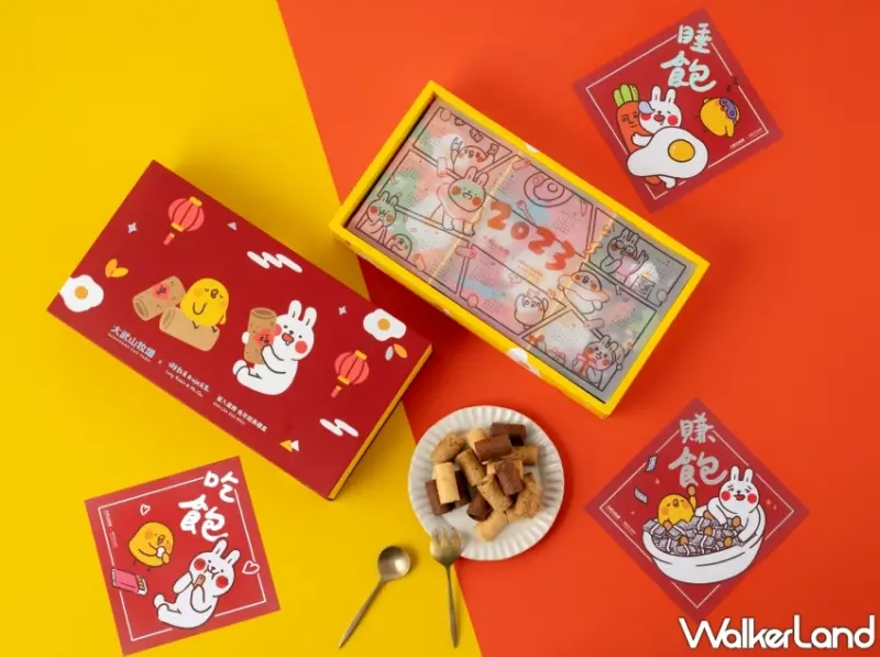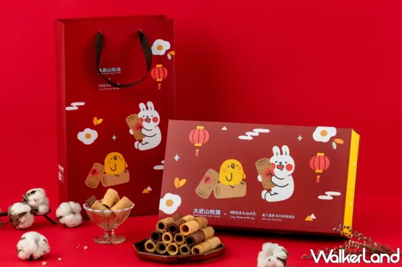 今年恰逢兔年到來,大武山牧場特別聯手同樣在乎動物福利又喜愛好蛋的插畫家「懶散兔&啾先生」,推出春節限定「雞兔伴你過好年」限量聯名商品。其中,「蛋入蛋捲 兔年經典禮盒」,喜氣洋洋的質感紅搭配幻彩燙金設計,配上懶散兔&啾先生吃著超唰嘴蛋入蛋捲的療癒形象,送禮大方又可愛程度滿分;打開來還有驚喜2023年曆襯紙小巧思可以收藏,兼顧實用又美觀。![]()
