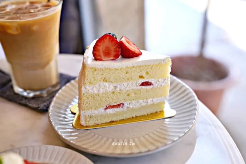簡單俐落的切面,再搭配上新鮮的草莓與藍莓,蛋糕口感很鬆軟不會乾乾的,奶油不甜不膩,搭配在一起剛剛好,就是哪種可以輕易吃上兩塊的清爽草莓蛋糕!<全文介紹>