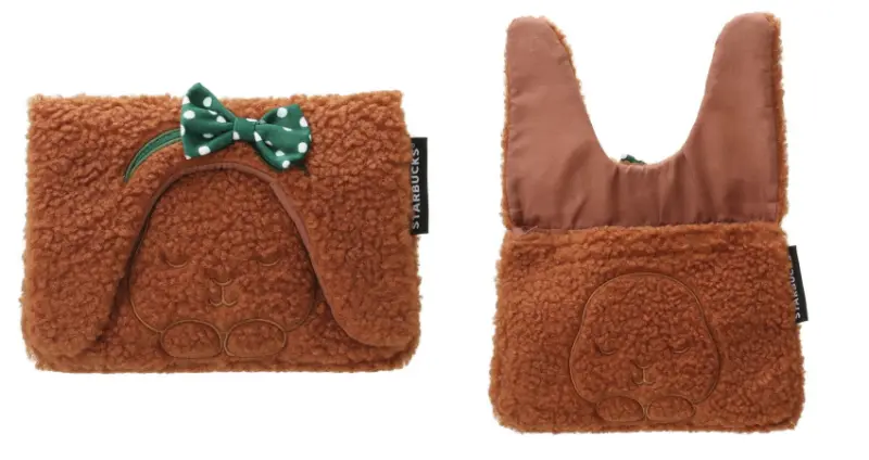 療癒小物的部分,當然也少不了每次都會出現的星巴克小熊杯塞和玩偶,隨著兔年將近,這次小熊們也都換上可愛的白兔套裝,陪星巴克粉絲們度過純白冬天;更不一樣的是,除了固定推出的隨身瓶、保溫瓶、馬克杯、星巴克小熊娃娃等周邊以外,這次日本星巴克還多開發了一款摩卡兔的刷毛收納包,闔上的時候就像是耳朵垂下來的模樣,一旦打開又會變成兩隻耳朵立起來的樣子,可愛度簡直飆破天際,買了也不忍心送人當禮物,只想自己留著好好使用。