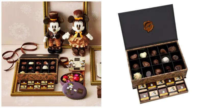 這次的聯名商品除了甜滋滋的巧克力,還推出了一款附有穿著可可色約會套裝的米奇及米妮玩偶的特別禮盒,組合當中各會放入一盒印有米奇與米妮身影的盒裝4入巧克力,不管送給女朋友或犒賞自己,都是會令對方或自己感到超開心的禮品選項。