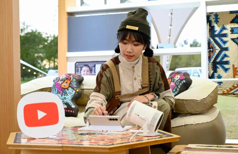 ●Galaxy Z Fold4露營體驗區:以露營延伸帳為概念,設置了舒適的分享體驗區,星粉可在此區體驗Galaxy Z Fold4 7.6吋大螢幕觀看影片的爽快感,搭配Youtube APP,找到最適合的露營影片清單來觀看喜愛的影片!