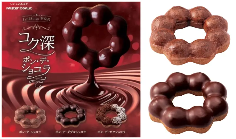 而2022年11月底上市的「濃情巧克力波堤」系列,口味各別為「蜜糖巧克力波堤」、「雙層巧克力波堤」與「餅乾可可波堤」,目前不僅在日本的Mister Donut門市還能購買到,就連台灣現在也正在同步販售當中,因此若近期沒有造訪日本的打算,還是可以在台灣先享受到第一波的濃情巧克力系列喔。