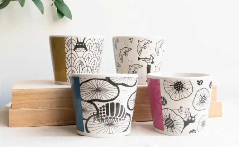 而粉絲最關心的周邊商品當然也不能錯過,展場中將推出許多原創全新商品,像是23部吉卜力電影的海報、超萌的貓巴士周邊、三鷹吉卜力美術館的獨家聯名商品等,還有以《龍貓》、《天空之城》為主題的刺子繡手提袋、茶杯、迷你盤子等,每一種都質感超高且作工精緻,說是為了這些周邊來看展一點也不過分。