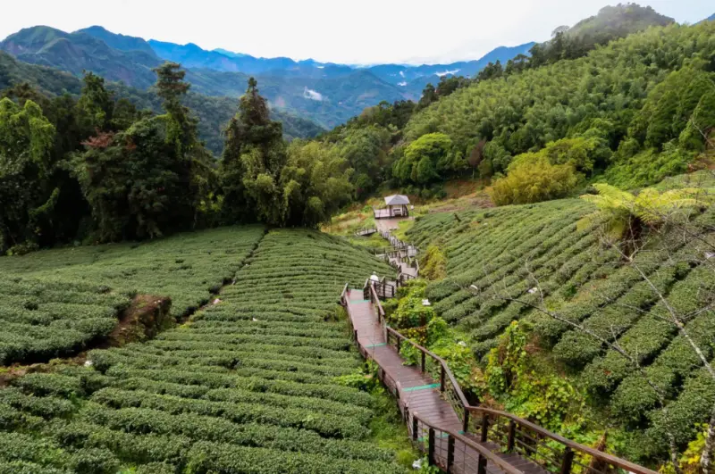走在仍濕漉漉的木棧樓梯上,四周是整片翠綠的茶園,這些就是台灣引以為傲的阿里山茶葉,在這樣的優秀山水中,孕育出色的高品質茶香,走在這樣的茶園中,有種拍茶飲廣告的感覺...<全文介紹>