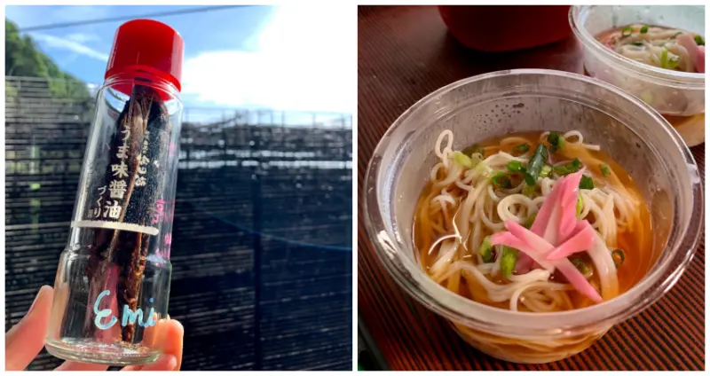 日文鰹節是指鰹魚做的柴魚乾,以宗田鰹魚做成的「宗田節」是高知縣土佐清水市名產之一。將鰹魚日曬煙燻乾燥而成的鰹節,香味濃郁甜美,可直接削成薄片做成高湯,還有將整條魚乾裝入醬油瓶中銷售,民眾購買後加入醬油,即成為日本調味聖品「鰹魚醬油」。可用於製作鍋物、湯麵的高湯。製作宗田節有百年歷史的「武政商店」,除了可購買宗田節鰹魚醬油瓶,也能體驗將手刨柴魚片裝瓶,製作屬於自己的宗田節醬油瓶。![]()