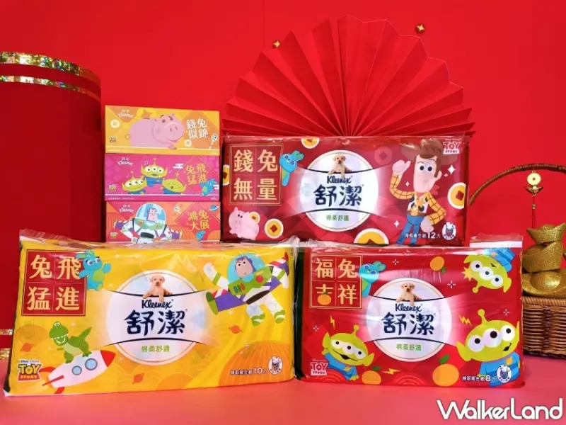舒潔搶在農曆春節前推出兔年新春限定款,巧妙以諧音梗將五款兔年吉祥話融入包裝,包括「兔飛猛進」、「錢兔似錦」、「鴻兔大展」、「福兔吉祥」及「錢兔無量」,每一款吉祥話都有「富貴」與「福氣」寓意,蘊含著民眾對金兔年前途似錦的嶄新期待,再搭配萌力十足的三眼怪、巴斯光年等玩具總動員8大高人氣角色,讓人迫不及待想統統買回家。![]()