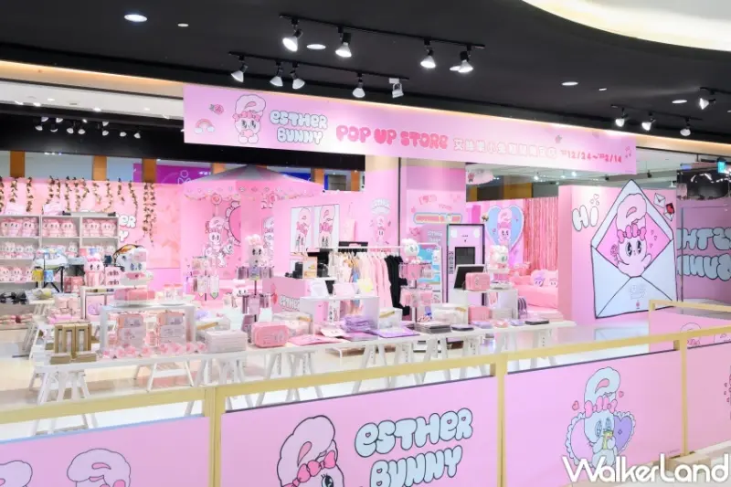 本次Esther Bunny在台北華山期間限定店,特別在展區前厚窗台打造粉內打卡點,展場內還有1.8米高Esther Bunny絨毛氣偶、還有Esther Bunny夢幻浴室打卡點,轉個身都能拍出大片。周邊小物的部分,更是多達上百款,從服飾、配件、包包,到文具小物、美妝周邊,一次滿足少女心。