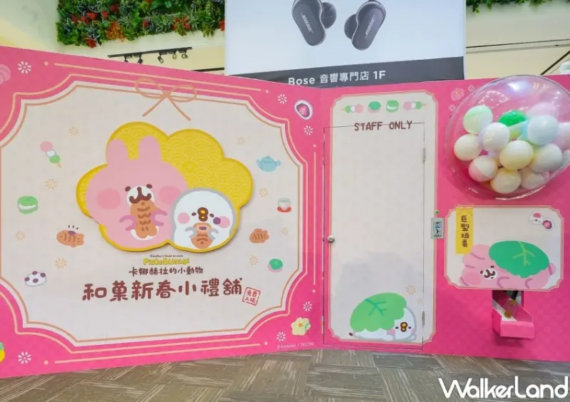 在中和,卡娜赫拉的小動物打造「和菓新春小禮舖」主題快閃店,12/22起登場,主打3大新春打卡點,其中包含超過10米寬「兔年夢幻美食牆」,新年氣氛的「新春打卡牆」則有粉紅兔兔注連繩、以及吃著點心的小土匪們,另外還有超高的「巨型和菓扭蛋機」,通通都是本次打卡重點。