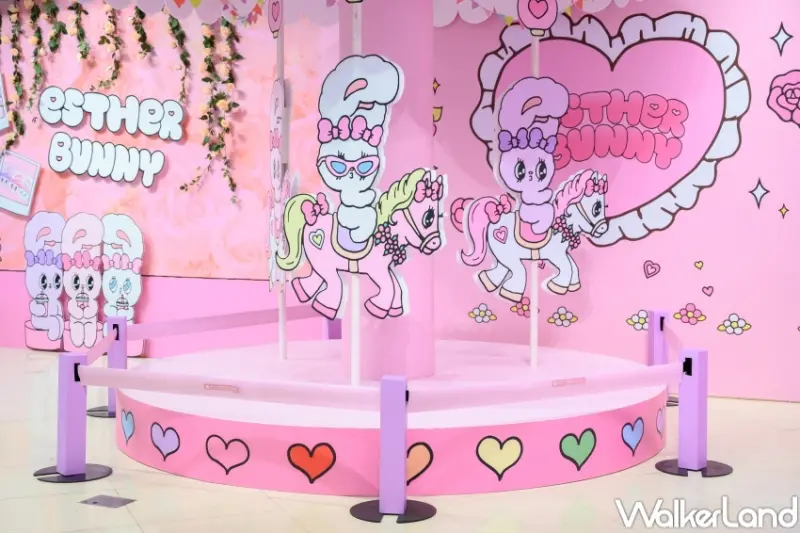 除了華山快閃店之外,這次「Esther Bunny 艾絲樂小兔」也造福南台灣的粉絲,在高雄夢時代以「粉紅遊樂園」作為主題,設置了超夢幻「粉粉旋轉木馬、粉色夢幻衣帽間、浪漫玫瑰花牆」等打卡點,和台北場不同主題風格,讓粉絲們通通都要採點打卡。