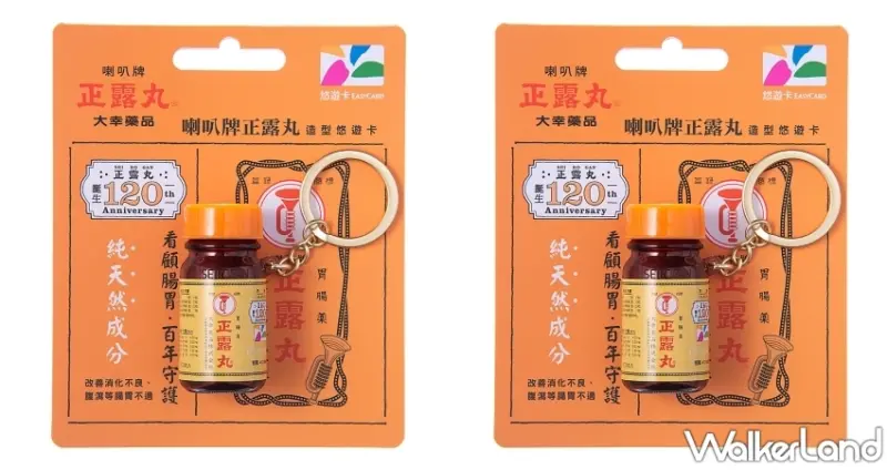 「正露丸」今年適逢問世120週年,第一代名稱為「忠勇征露丸」,日本帝國陸軍在日俄戰爭期間當作腸胃藥使用,意為帶著征服俄國(當時稱露西亞),之後改名「正露丸」,並採用喇叭標誌作為品牌辨識。「正露丸3D造型悠遊卡」呈現「正露丸」橘色瓶蓋與咖啡色瓶身,標籤上有熟悉的喇叭標誌,瓶蓋可旋開,放入隨身攜帶小物或藥品,是你健康的守護小物。![]()