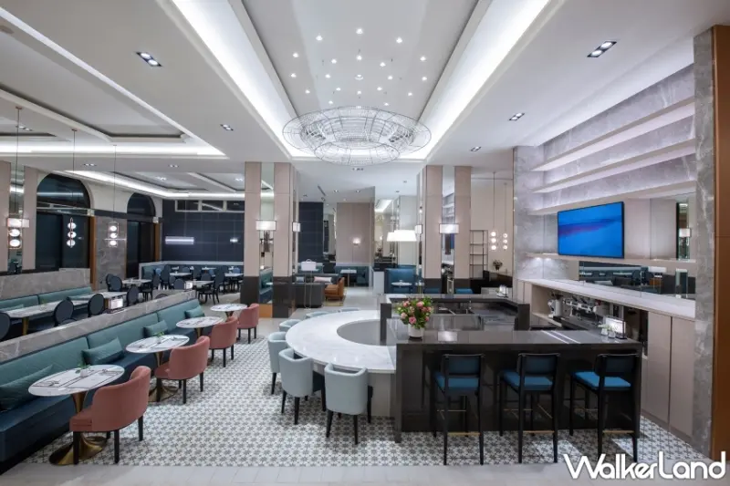 兩層樓高連接天花板的鏡面拼貼牆,義大利產安格拉珍珠ANGORA PEARL大理石牆,及土耳其產卡拉拉Carrara大理石餐桌檯面,進口天然大理石襯以玫瑰金金屬收邊線條,活潑的馬蹄型酒吧及馬賽克花磚地板,訂製的皮製沙發搭配義大利時裝布料收面,各式高低金屬天鵝腳的大理石桌,展現磅礡的巴洛克及浪漫洛可可的設計精隨,融入現代平面空間的規劃,讓每位旅客沉浸在法式優雅的氛圍體驗。![]()