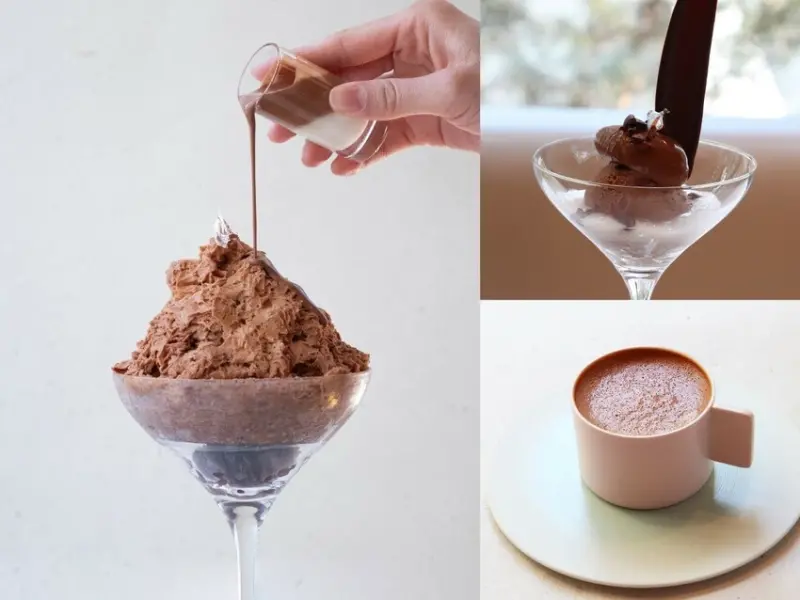 店家還開發出多道獨特的巧克力甜點,像是可搭配鹽巴、胡椒、蜂蜜來改變風味的「巧克力臘腸」,以及使用發酵奶油、濃度72%以上的巧克力、哥倫比亞產的熟成蘭姆酒所製成的「可麗露」等,每道皆適合搭配調酒、紅酒、威士忌等酒飲,感受嶄新的巧克力味覺體驗。