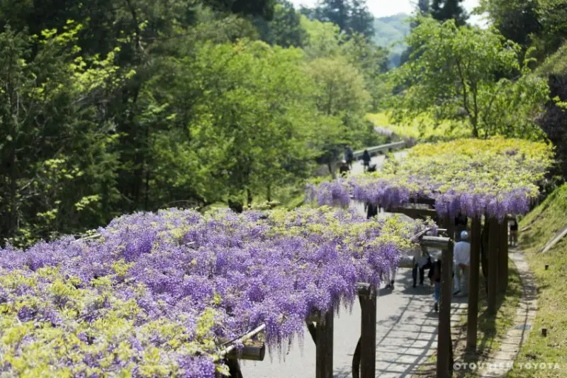 位於豐田市藤岡地區的紫藤迴廊種植 4 種紫藤:九尺藤、紫三尺、八重黑龍藤、白花藤,當紫藤在綠意中翩翩起舞,帶來春天特有的浪漫。約 300 多公尺的紫藤小徑雖然不長,但是令人流連忘返,每到花季時舉辦的紫藤花祭典設有市集會販售當地特產、為遊客提供旅遊諮詢,祭典期間提供往返愛知縣綠化中心的接駁巴士服務遊客,交通也相當便利。