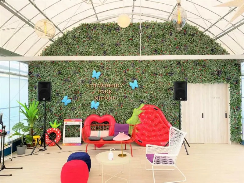 而這裡也有別於一般觀光果園的體驗,草莓公園MIFUNE打造時尚、可愛的休息區環境與打卡拍照區,以及新開設咖啡廳「MIFUNE CAFE」,以自家栽種的新鮮草莓製作各式甜點,讓到此一遊的遊客都沉浸在夢幻的草莓世界。