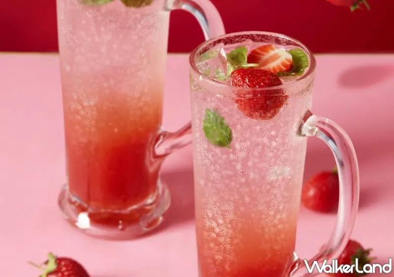 草莓喳喳冰、紅寶石草莓泰奶、草莓柚香泡泡飲