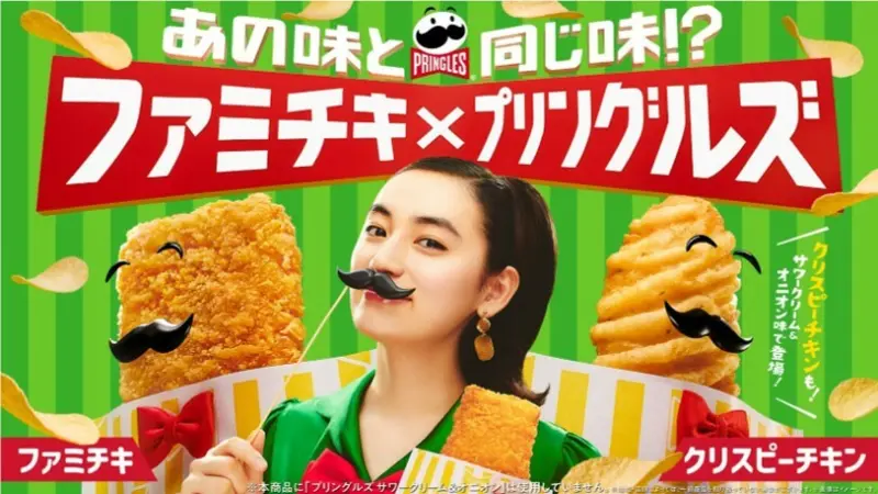 「全家炸腿排X品客洋蔥」這款神級聯名美食,除了保有日本全家炸腿排招牌的多汁酥脆口感,據官方表示更真實還原了品客洋蔥口味那獨特又令人上癮的奶油洋蔥風味,不只可以享受一口接一口停不下來的滋味,放進漢堡裡吃味道也不輸連鎖速食店,堪稱CP值最高的隱藏版吃法,還加碼找來了近期出演日劇《初戀First Love》一炮而爆紅的新生代女星「八木莉可子」代言,開賣當日就被日本網友瘋狂掃貨,造成話題。