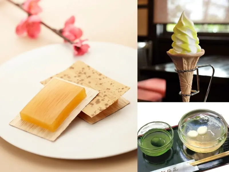 店內附設悠靜的喫茶空間,可以享用多種梅子風味的創意甜品,有使用紅梅苑特製梅酒所製成的「梅絹」,其口感宛如絹絲般的滑順,香氣十足;使用牛奶冰淇淋再淋上特製梅子糖漿的「青梅冰淇淋」,口味既濃郁又爽口;「青梅葛切」則是將滑順的葛粉條,蘸著青梅糖漿來享用,酸甜滋味令人一吃就上癮。