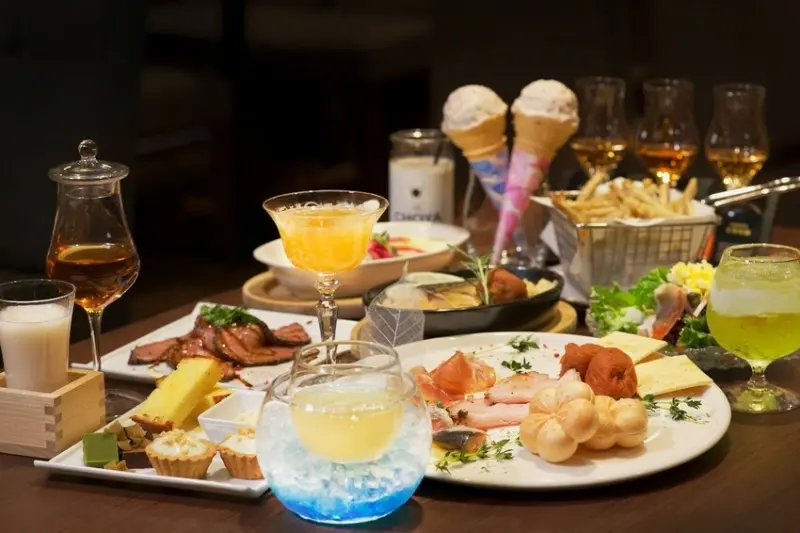 餐點設計也非常講究與創新,人氣第一名的「全梅晚宴套餐(梅づくしディナーコース)」,包含使用肉、魚、蔬菜與梅子組合的前菜,附梅子塔塔醬的炸物、主食、飯類、甜點等,每道皆使用梅子來調製,與梅酒的契合度絕佳。這個套餐除了料理吸睛,用餐者還可享受2個半小時的暢飲服務,可品嘗超過100種以上的梅酒調酒與無酒精梅子飲品。