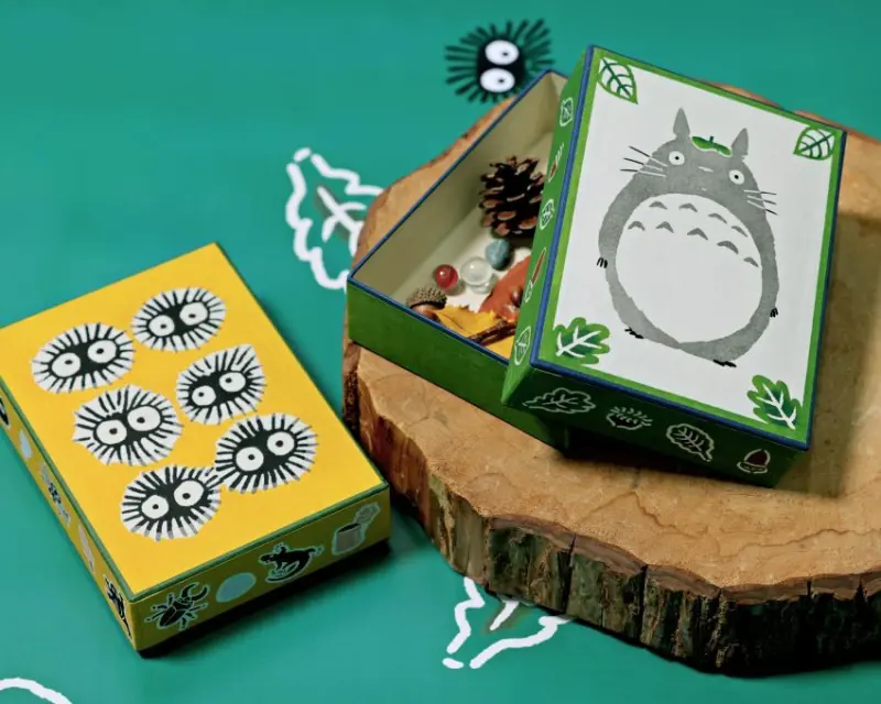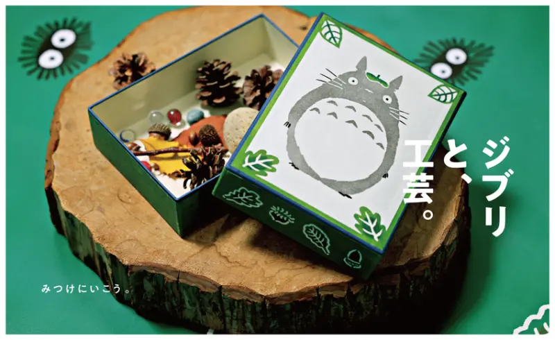 而上面印著超萌龍貓與灰塵精靈的「八尾和紙型染收納盒」,是以毛筆在溫潤的八尾和紙上,以手工繪製出龍貓和灰塵精靈的圖案,特點在於能夠感受到日本和紙獨有的質樸質感,以及鮮豔卻柔和的染料色澤,做為放置珍貴物品的製物盒,大大提升了生活素質。