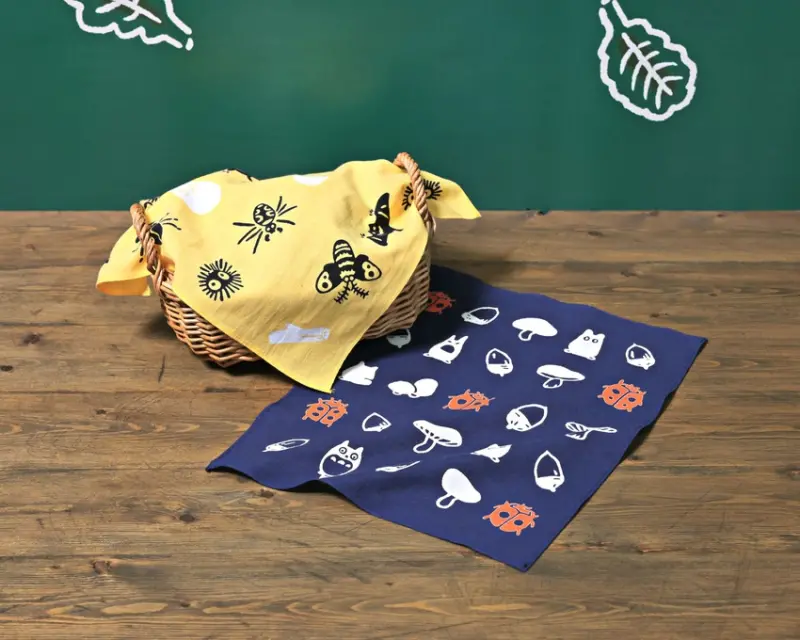 除此之外,還有以紅遍全國的佐賀縣工藝品「肥前吉田燒」來製作的「一輪插花瓶」,掌上型的迷你大小讓人愛不釋手;以《龍貓》片頭曲和片尾曲所出現元素來打造的奈良風格手帕也是吉卜力不容錯過的收藏品;還有適合便當盒專用包巾上,也印滿了全新原創的手繪水彩插畫。不管是哪一項周邊,都能從中川政七商店特有的傳統工藝,呈現出不一樣的吉卜力周邊風格。