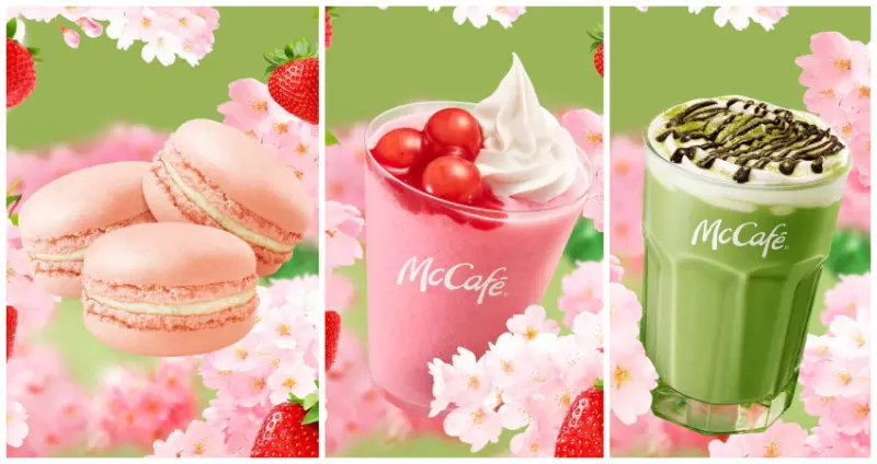 來到日本麥當勞才能看到的「McCafé by Barista」,是由專業的星級咖啡師以獨到手法來製作出媲美知名連鎖咖啡廳的飲品與餐點,在這裡從濃濃的義式濃縮咖啡、美式喝咖啡、卡布奇諾到甜蜜的冰沙飲料,全都能讓你品嚐到職人等級的手藝。隨著季節更迭,McCafé by Barista近期宣佈將從3月1日開始,販售全新兩款冰沙與一款甜點,分別是「草莓白玉冰沙」、「雙倍巧克力宇治抹茶拿鐵」與「草莓牛奶馬卡龍」,主視覺分別為粉色與草綠色,營造出一股春季的爛漫氣息。![]()