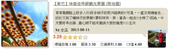 秋天也是柿子的產季,雖然我家很少出現柿子這種水果,但對於曬柿子那樣一片金黃色的壯觀景象,莫名的很想去瞧瞧!!目標就鎖定新竹縣新埔鎮的味衛佳觀光果園吧!!