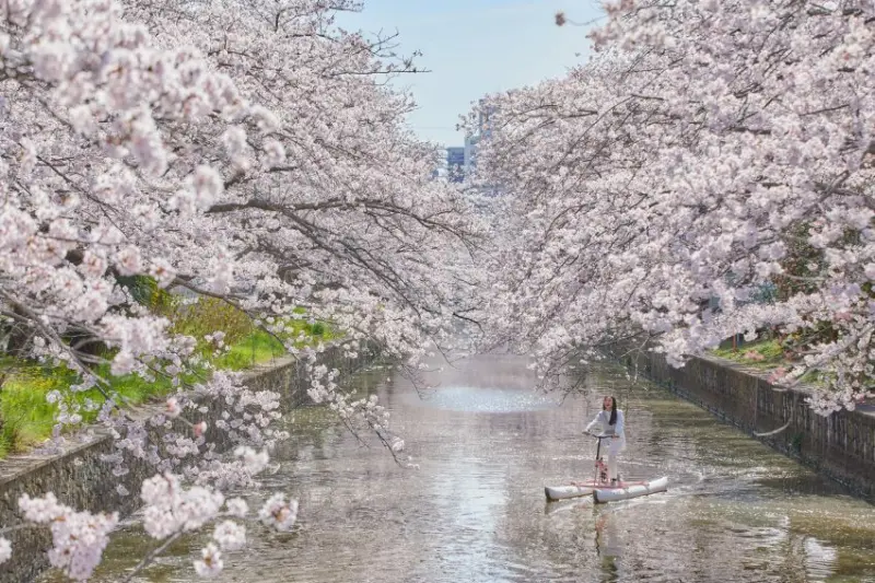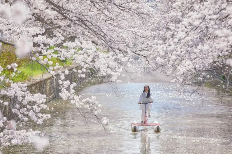 水上自行車具有高穩定性,時速僅有約10 公里,能夠舒適地在水上騎車,而且跟一般腳踏車一樣,轉動把手就能控制方向,就像騎在路上一樣輕鬆。旅客能夠邊悠閒欣賞櫻花隧道邊騎車前進,上下車時也會有工作人員在旁協助,可以放心騎乘,享受賞花樂趣。![]()