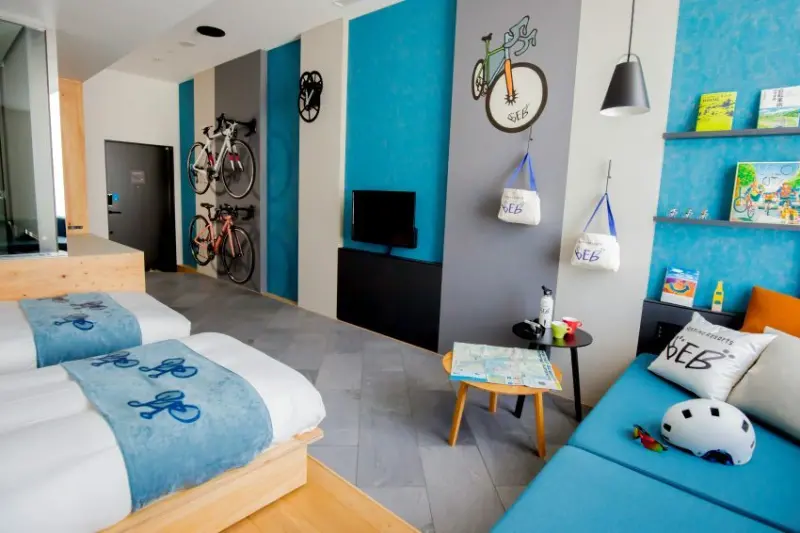 星野集團「BEB」系列的首間旅宿「BEB5 輕井澤」在2019年的秋季率先開業,當時以「聚會以上、旅行未滿」的輕旅程概念抓住了年輕族群的心,因此馬上就引爆話題,很快地第2家「BEB5 土浦」便於2020年3月在茨城縣全新開幕,並以「迷人輪泊」為主題,地點就設在JR土浦站自行車複合設施「PLAYatre TSUCHIURA」內。特別的是,除了延續BEB5的理念,BEB5土浦還提供了自行車一同入住的服務,讓旅客們能將愛車直接放直於客房內,且工業風設計的交流大廳24小時開放、只要入住者全員29歲以下,還可享有優惠價格。