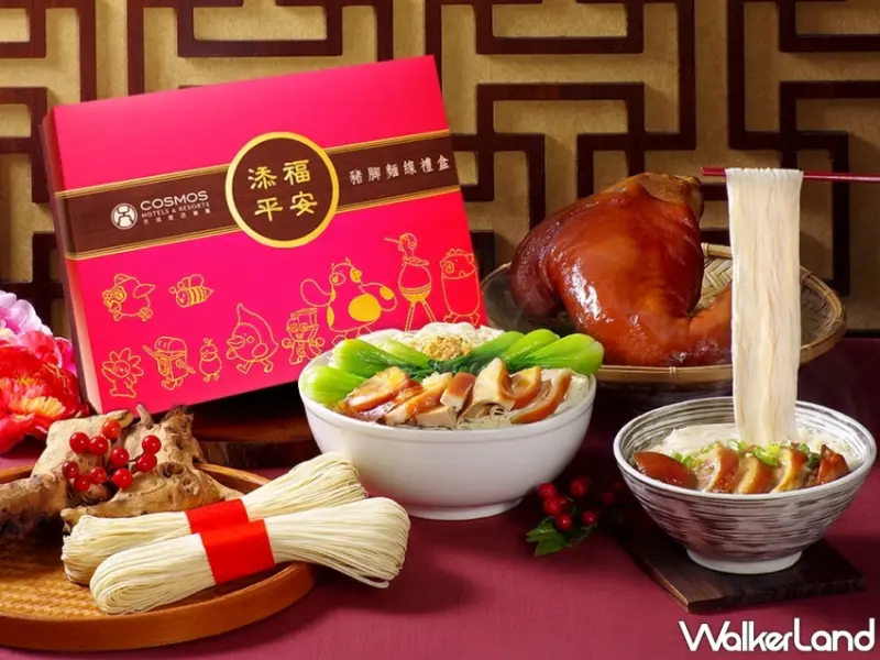 天成飯店集團於旗下台北天成大飯店、台北花園大酒店與世貿國際會館,推出「添福平安豬腳麵線禮盒」、3月31日前購買再享孝親外帶價每盒888元,禮盒內含1.6公斤豬腳帶蹄花、手工麵線,主廚團隊嚴選食材以冷凍熟食真空包呈現,在家簡單加熱即可輕鬆上桌,無論是子女了表孝心為父母添壽,更為齊聚團圓答謝餽禮的最佳禮物與心意。