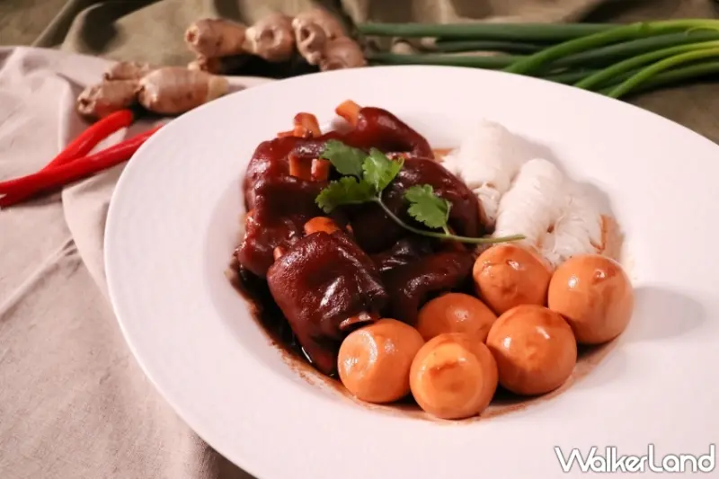 豬腳選用整隻帶骨豬前肘,烹調上遵循古法將豬腳川燙後連同醬油、冰糖、大骨、中藥材一同熬煮兩小時,完美入味外、皮Q肉彈,滿是豬腳釋放的膠質卻爽口不油膩,再搭配上手工特製麵線,讓人忍不住一口接一口。
