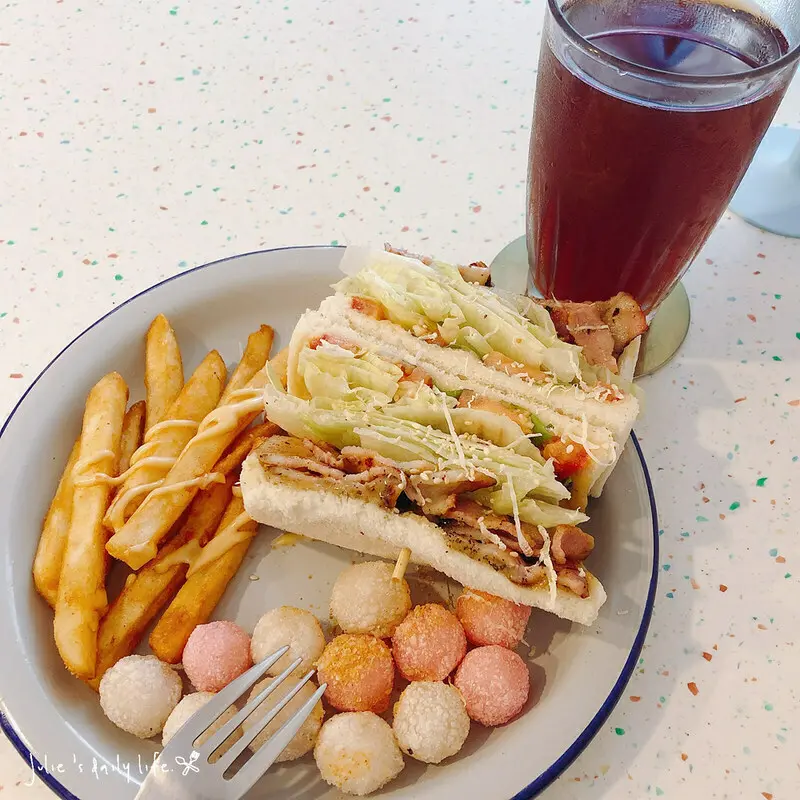 鹹香的培根搭配上大量的生菜,平衡了鹹度,讓整體吃起來感覺很清爽不油膩。脆薯跟湯圓雖然都是配角,但炸湯圓實在太搶鏡了,吃完三明治跟脆薯再吃湯圓,有一種吃到甜點可以收尾的感覺。<全文介紹>