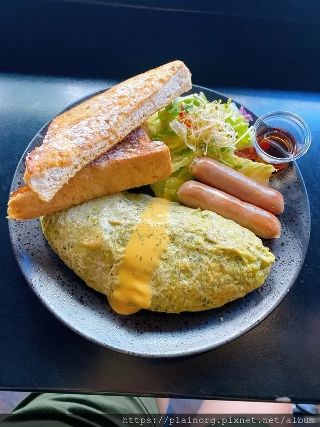 我心心念念的歐姆蛋捲終於來了~青醬雞肉歐姆蛋整盤看起來就是賞心悅目啊!原本歐姆蛋套餐是附一般吐司,但我個人當天想吃軟軟甜甜的法式吐司,所以我有+25元升級法式吐司~事實證明我完全升級對了…<全文介紹>