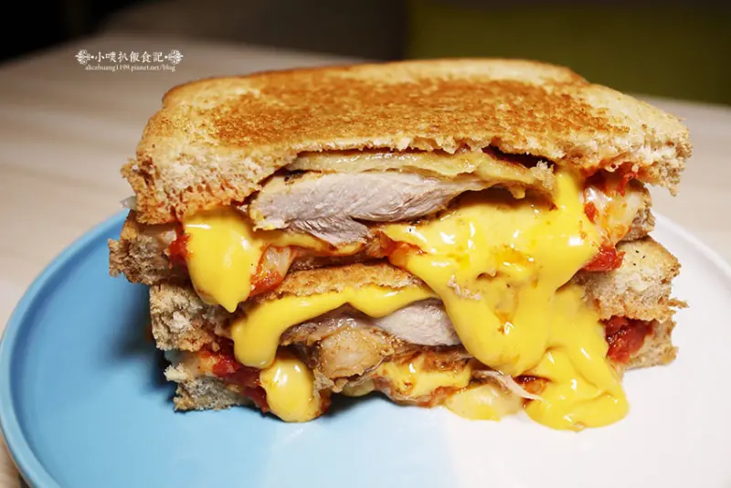 這是店內熱賣第一名的「墨西哥辣G莎莎起司熱煎吐司」,看著狂流般的起司,實在令人食指大動。內層夾附著,厚實的帶皮嫩雞肉,雞肉煎製外層焦香,皮Q好食,內層肉質軟嫩多汁,刷上微辣的莎莎辣醬、切片的墨西哥辣椒…<全文介紹>