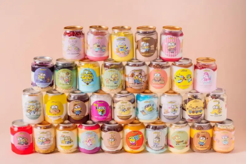 在這次的快閃甜點店當中,光是外型鮮豔可愛的「小小兵易開罐蛋糕」就有多達32種口味,包括提拉米蘇、抹茶、肉桂奶茶、草莓優格與小小兵最愛的香蕉都一應俱全,幾乎你能想得到的甜點風味都能找到,而且令人更開心的是,32種口味還分別對應了不同的32種包裝貼紙,絕對讓粉絲們選擇困難。
