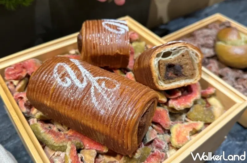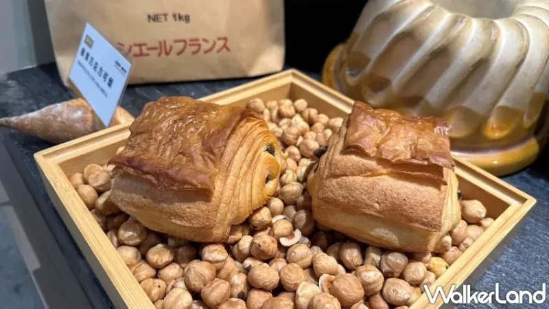 在新址開幕的同時,便推出兩款味道頗富春季感的商品「可頌布里歐、香片梅子乳酪麵包」。其中,可頌布里歐,是可頌外皮包裹著布里歐麵包及內餡,等於是兩種麵包體的結合,外層酥脆、裡頭鬆軟,市面罕見。風味則以紅茶與芭樂為主調。製作難度不小,前後得耗時三天。