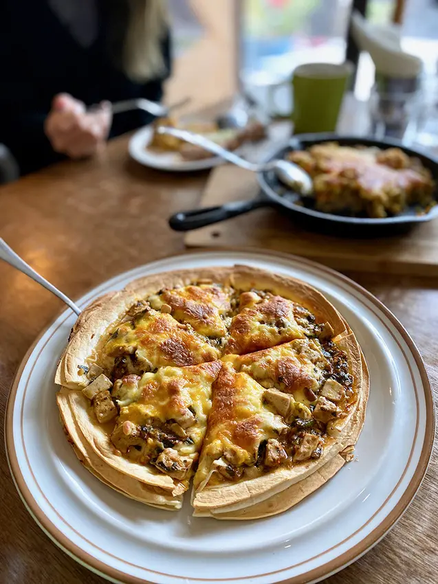 青醬烤餅裡面有地瓜泥,是蠻綿密的口感,然後地瓜滋味香甜。青醬部分蠻清爽,還多了番茄等調味,加上洋蔥的辛辣感,讓這份烤餅吃起來不容易膩口。<全文介紹>