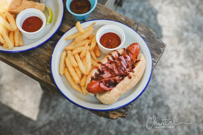 我的BBQ熱狗堡上面還加了培根,香酥油脂豐富的培根讓熱狗整個口感變得更有層次,而且顯得多汁不膩,搭上鹹甜鹹甜的BBQ醬完全是我的菜。<全文介紹>