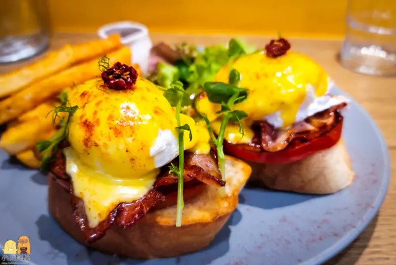 加上培根根本就好美式!而且班尼迪克蛋上面還有一個番茄乾,味道非常有層次!加上楓糖跟培根的香氣,融合班尼迪克蛋的蛋黃~好順口喔,瞬間愛上!<全文介紹>