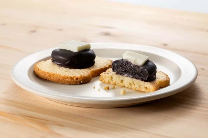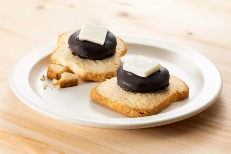 除了小倉豆泥用料飽滿之外,還特別在上方放了一片方形的奶油巧克力,讓餅乾整體的外觀看起來更像名古屋人最愛吃的道地紅豆吐司造型;就連分裝的塑膠袋與外層包裝紙盒,都印上了可愛又復古的手繪風奶油小倉吐司,也難怪會在短時間內引起甜點控瘋搶,甚至有望刷新名古屋伴手禮清單。
