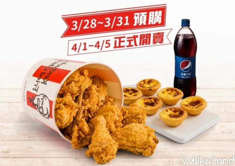 肯德基「買一送一」薯條、雞塊、玉米濃湯等優惠期限到3/31止,接下來在4/1-4/5針對清明假期推出「連假限時優惠餐」,內容包含8塊咔啦脆雞、原味蛋撻6顆、以及百事可樂1瓶,,優惠價499元,相當於直接幫速食控打58折超划算,讓人揪團聚餐吃雞。