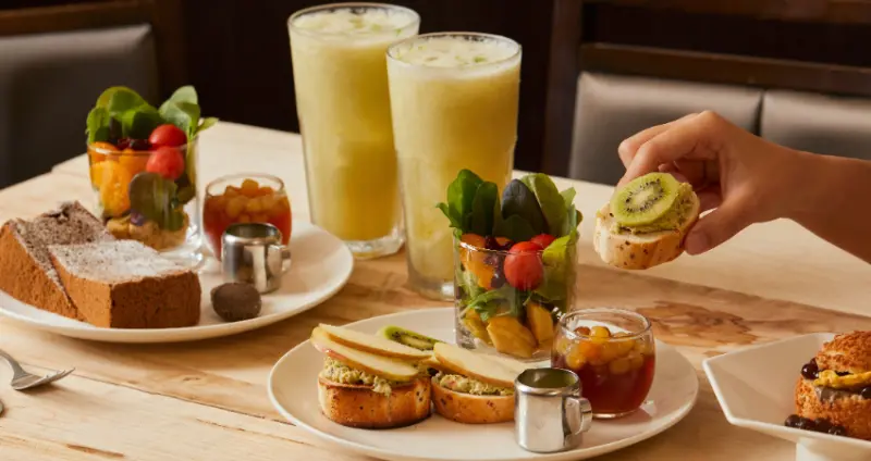 跳脫高熱量、高糖分,健康減糖卻不失精緻與美味,並以台茶入菜為核心,推出清爽系質感鹹甜午茶雙饗:鮪魚軟法派對、鐵觀音蛋糕派對。輔以新鮮水果及鮮食蔬菜杯,不僅提升美味饗宴,讓你吃得巧、也吃得飽,塑造台式午茶的新式體驗!此外,在食材選用上,特別嚴選在地有機蔬果,絕對是食在美味、健康又安心!而且用餐不限時,讓午後茶食光更加愜意!