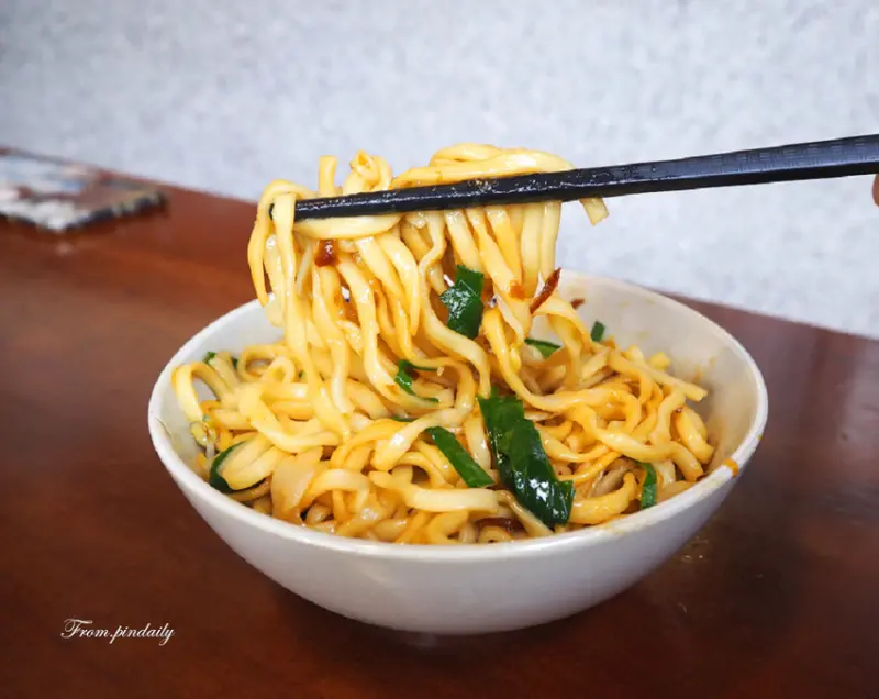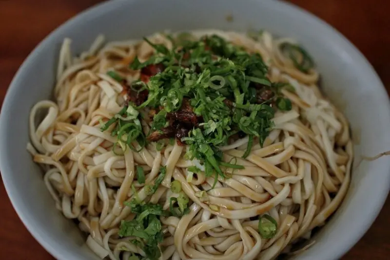 加入豆芽菜、韭菜等材料烹煮的ㄤ咕麵,看似簡單的一碗麵在淋上店家特製的葱油醬後便變得不簡單了,和香氣十足的醬料一同攪拌後,看似油膩卻意外如此的爽口有著讓人一口接著一口的魔力呢!<全文介紹>