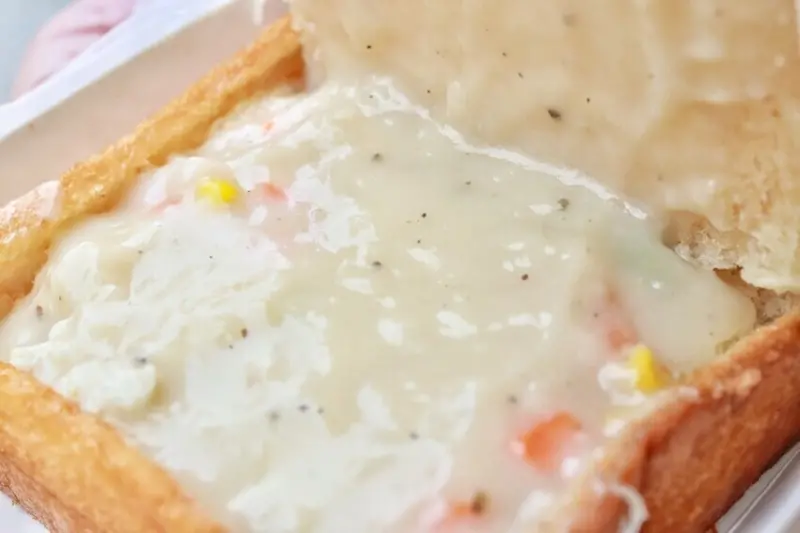 官財板有迷你版跟正常版可以選擇,價位還算平價,現吃熱熱吃最好吃,但冷了也不至於到難吃,只是會覺得有點油,畢竟吐司是先油炸過,另外它們也有賣金元寶(炸餛飩)。<全文介紹>