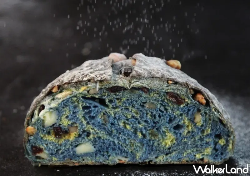 以招牌乳酪歐式麵包為基底設計的「星夜」同名麵包,主廚為了創作出猶如名畫中的藍靛色的夜空,特別選用天然槴子花與老麵自然發酵、染色,完全不含防腐劑與人工添加物,並添加葡萄果乾、核桃、杏仁粒、乳酪丁,模擬出清澈夜空裡的璀璨繁星。